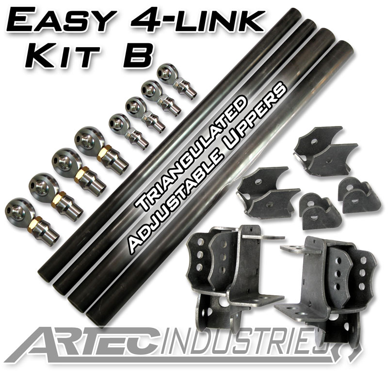 Our Easy 4-Link Kit A is the simplest way to get your links done. This kit is based off our most popular parts we’ve sold our customers for a single triangulated 4-link with angled upper control arms and straight or very slightly angled lowers. The brackets available in this kit allow for separate upper and lower mounts on the frame side for customizable 4-link setups.