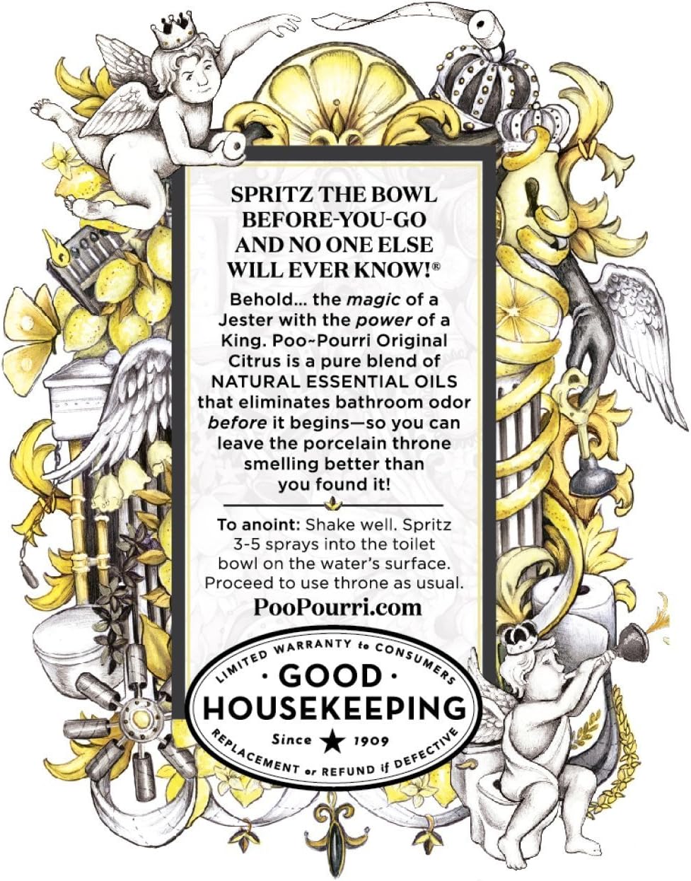 - Scent: Lemon, Bergamot and Lemongrass. Eliminate bathroom odor before it begins so you can leave the porcelain throne smelling better than you found it!