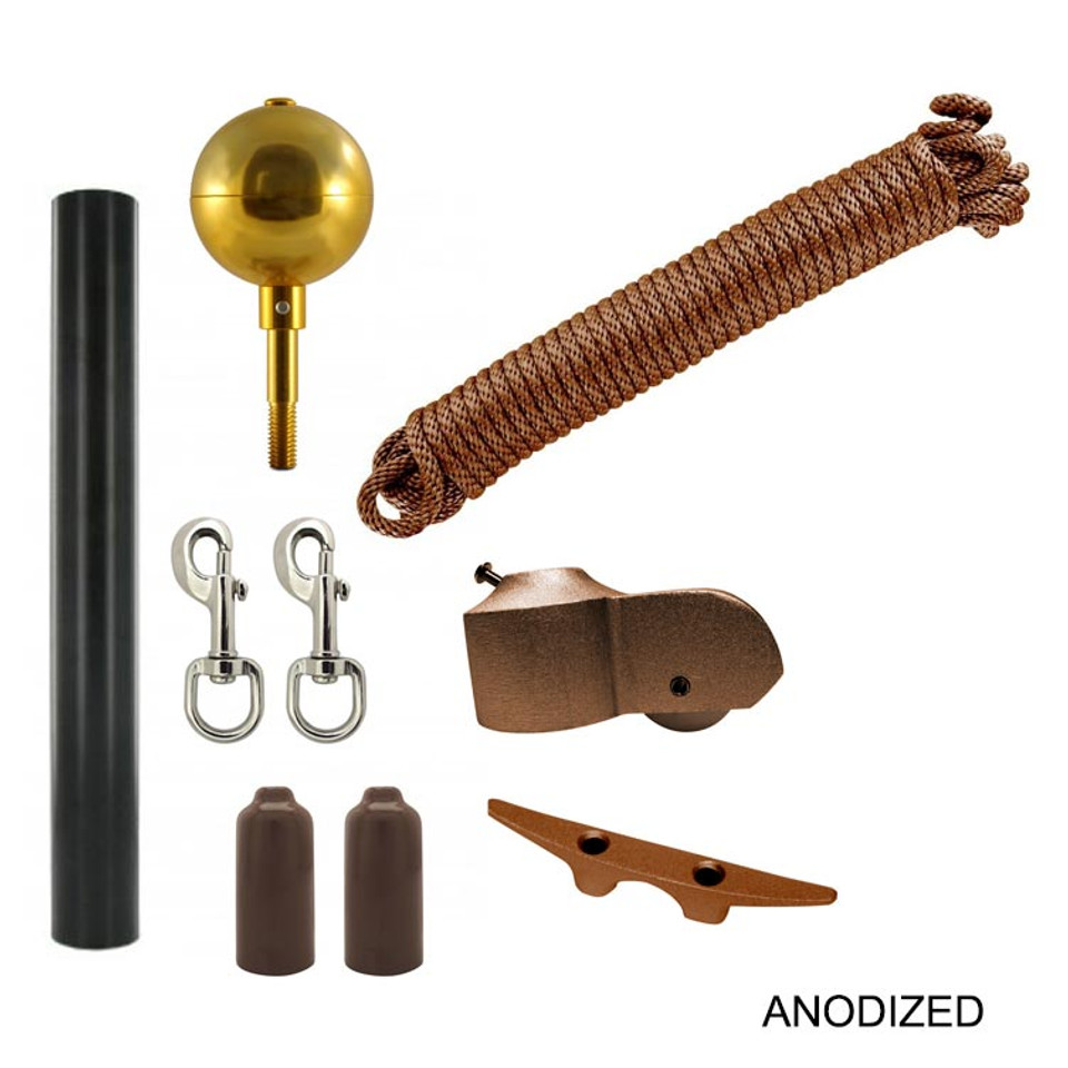 The Super Tough Commercial Grade Sectional Flagpole comes in at 25ft and is available in a bronze powder coat or bronze anodized finish. This comes with everything you need to put your flag up in front of your home or business, you just have to supply the flag! This flagpole comes in cone tapered sections for precise tolerances and to make setup as easy as can be. Along with this, you get a stunning gold aluminum ball for the top, rope pulley and complete halyard assembly for raising your flag and chrome plated bronze snap hooks to keep your flag in place. The flagpole is made of high-quality commercial grade aluminum alloy that is durable and looks great! Don’t pass up this great product. Whether you are looking for some curb appeal or merely a way to show your patriotism, the Super Tough Commercial Grade Sectional Flagpole is the way to go. This comes with everything you need for a permanent fixture that will last a long time and look great doing it.