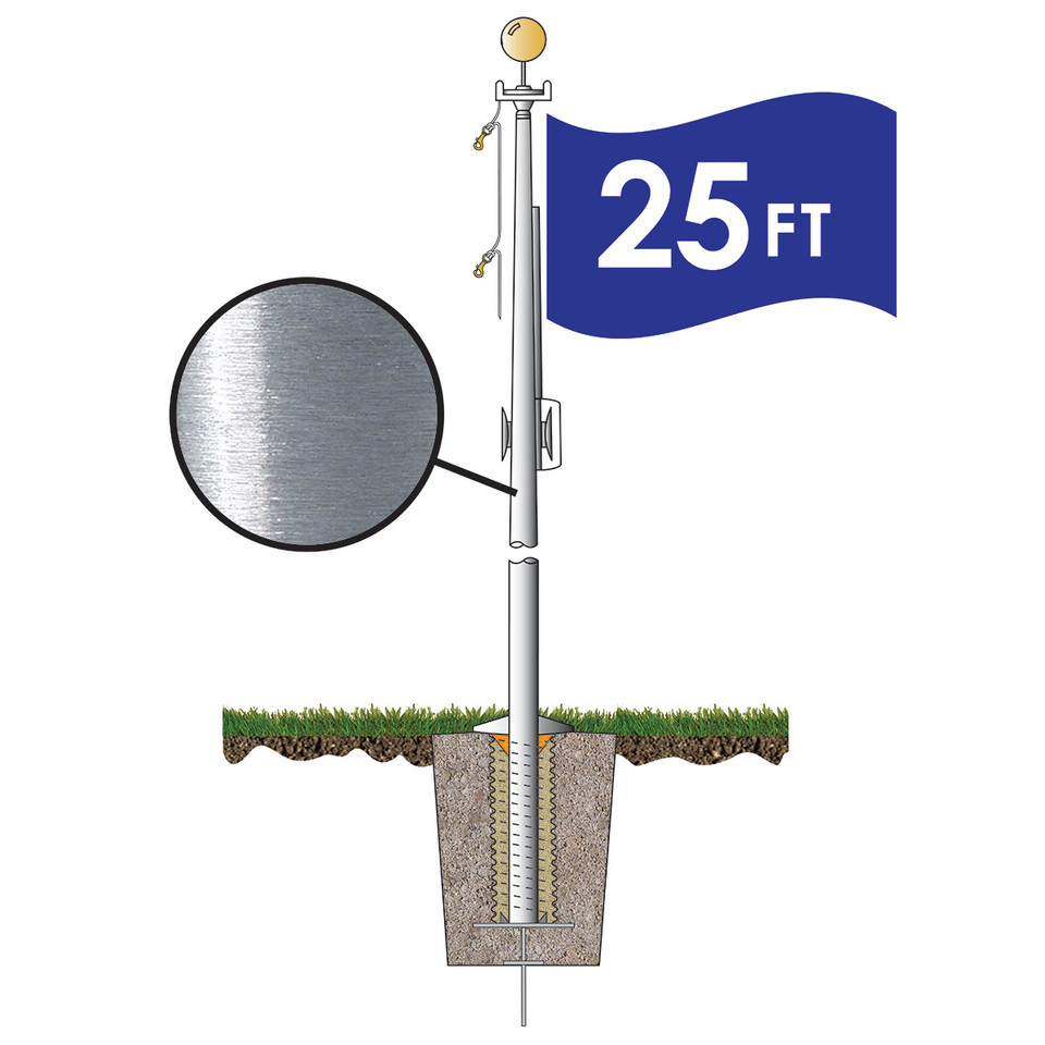 The recommended size flag for this flagpole is a 4′ x 6′ flag. If you want to fly two flags on your new 25′ flagpole, a 3′ x 5′ and 2′ x 3′ would be suggested.